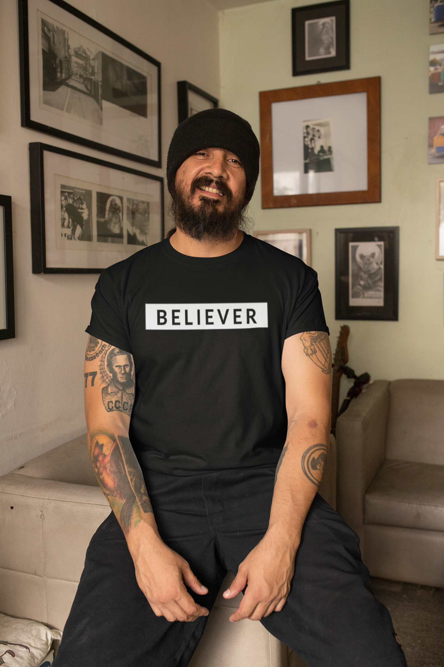 Fashionable collection of baseball caps and hats with an inspirational message.