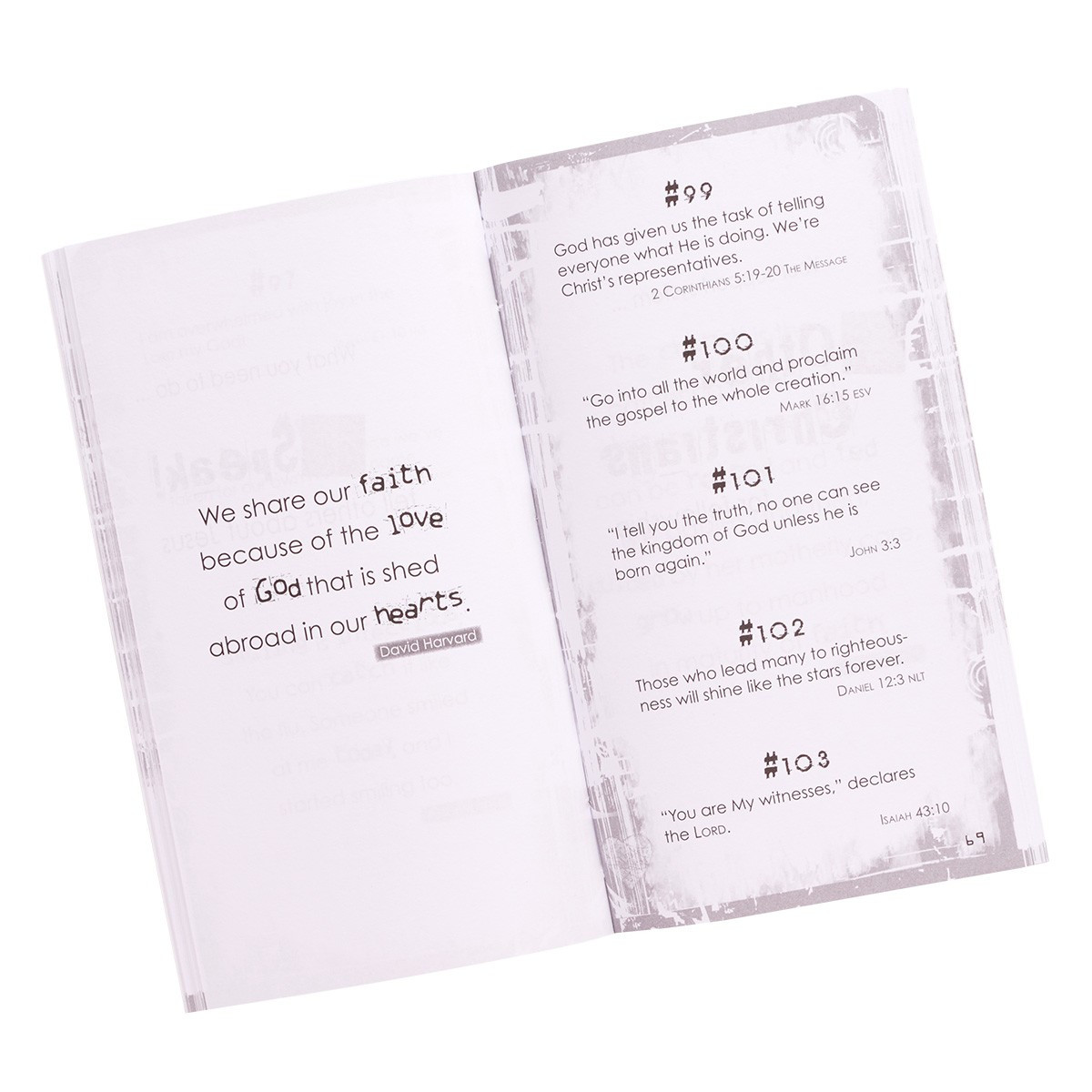 This handy sized book includes 199 Bible verses that are thematically organized. Themes include comfort, guidance, forgiveness, provision, hope, peace, rest, relationships, compassion, honesty and more.