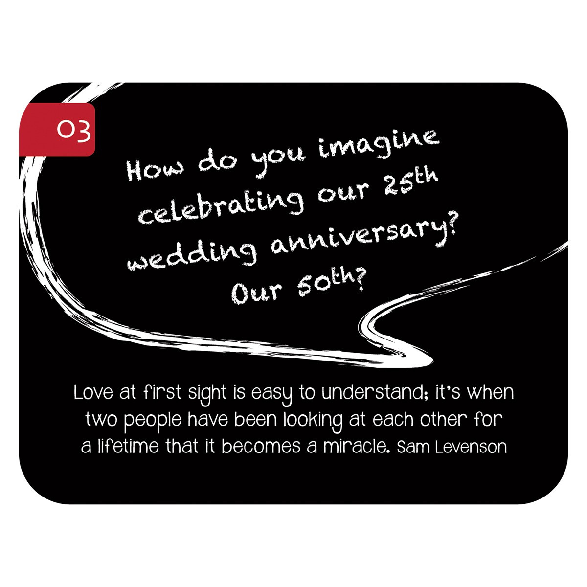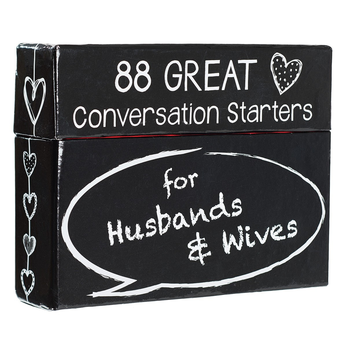 The 88 Great Conversation Starters For Husbands & Wives is a great size to fit into a stocking stuffer or to take with you on a date night. Give the gift of your time and attention when you give the 88 Great Conversation Starters For Husbands & Wives as part of a birthday or anniversary gift!