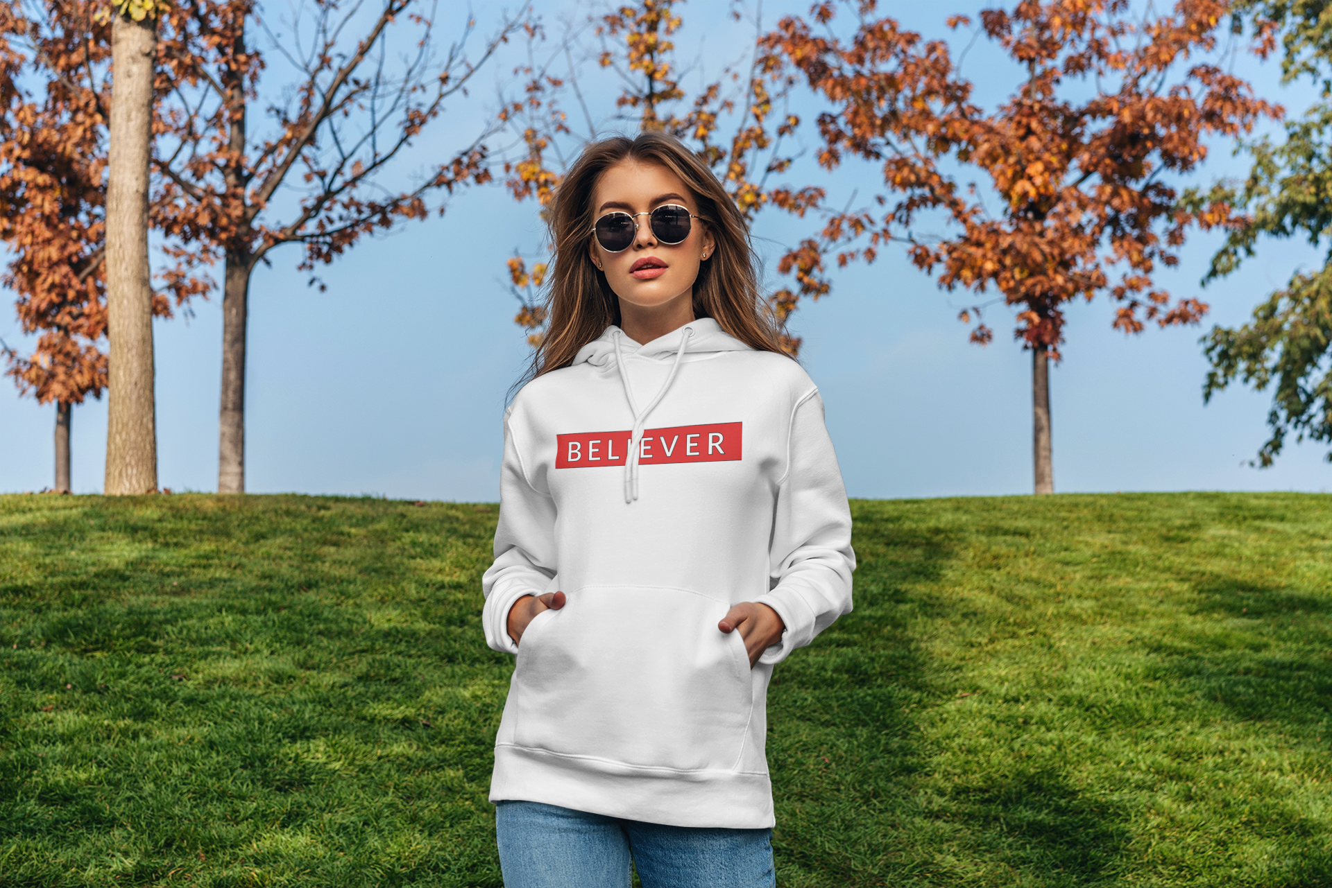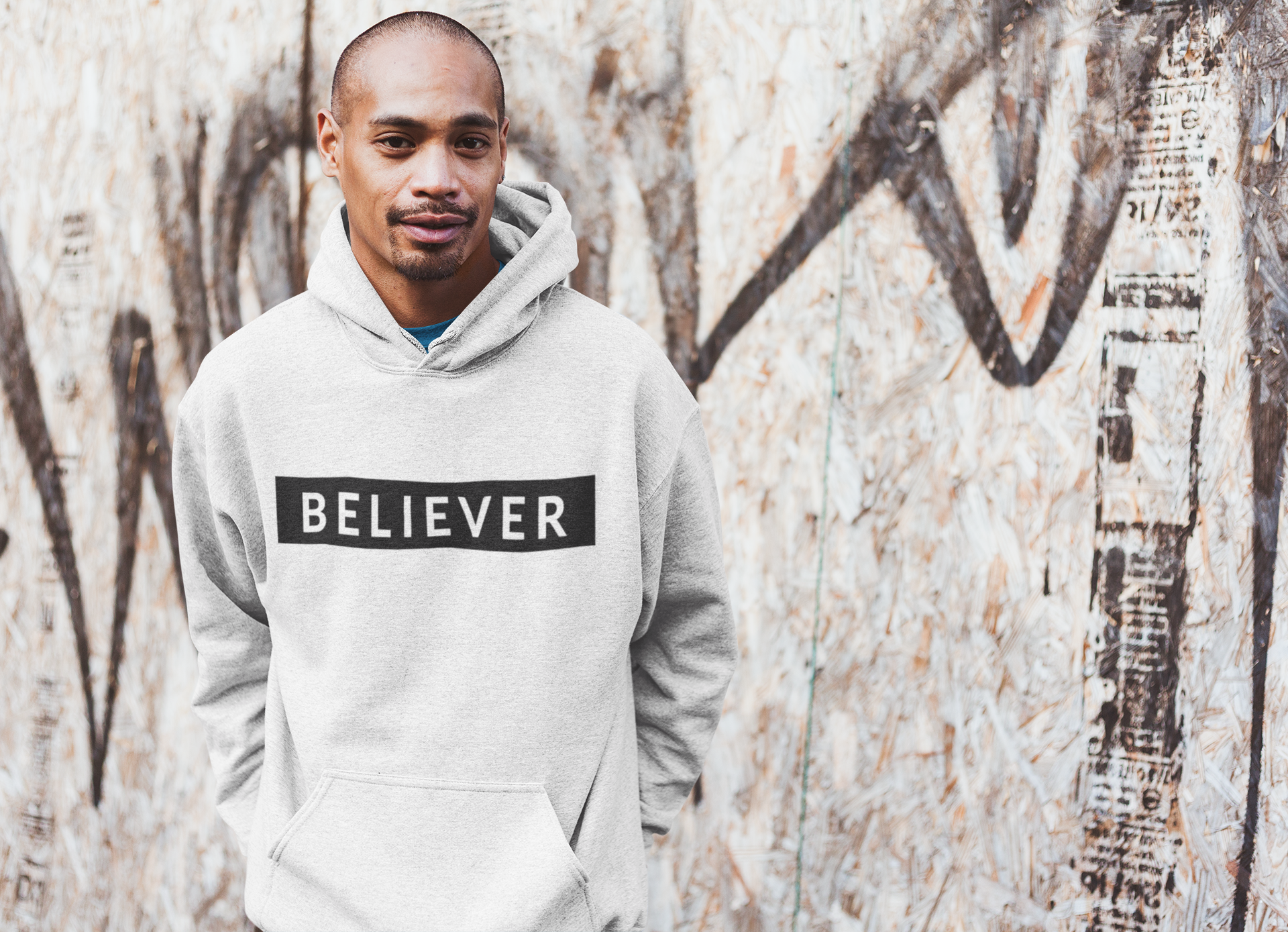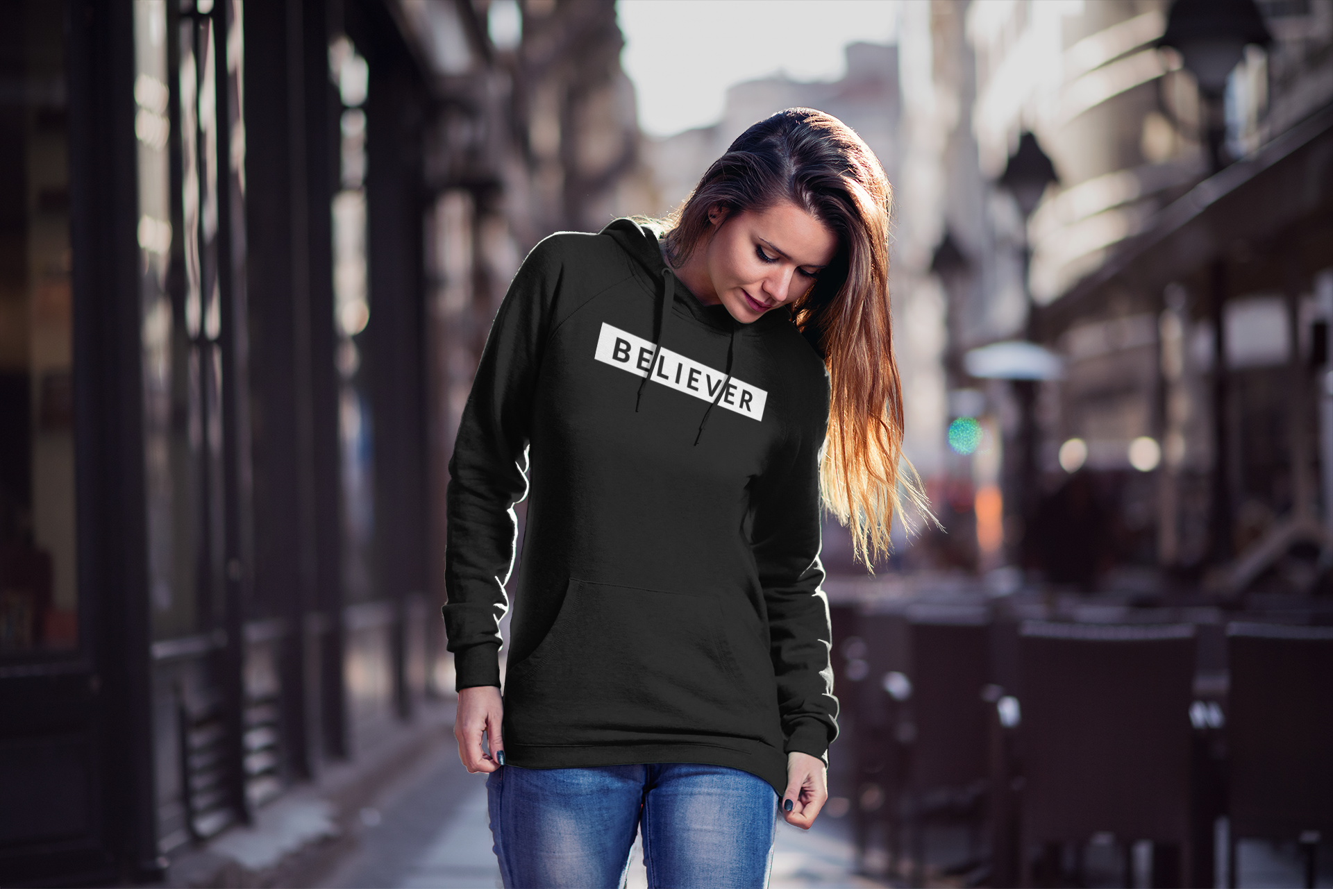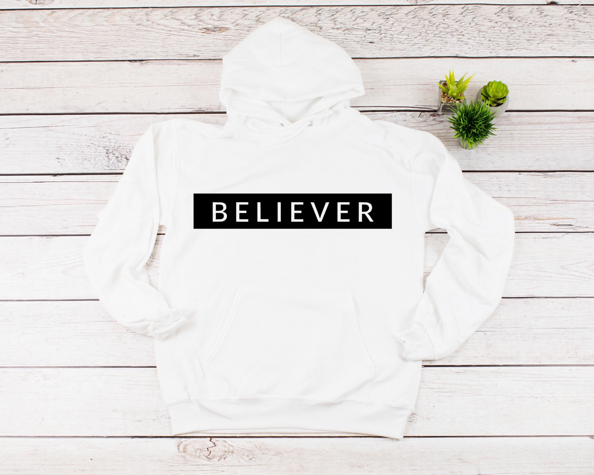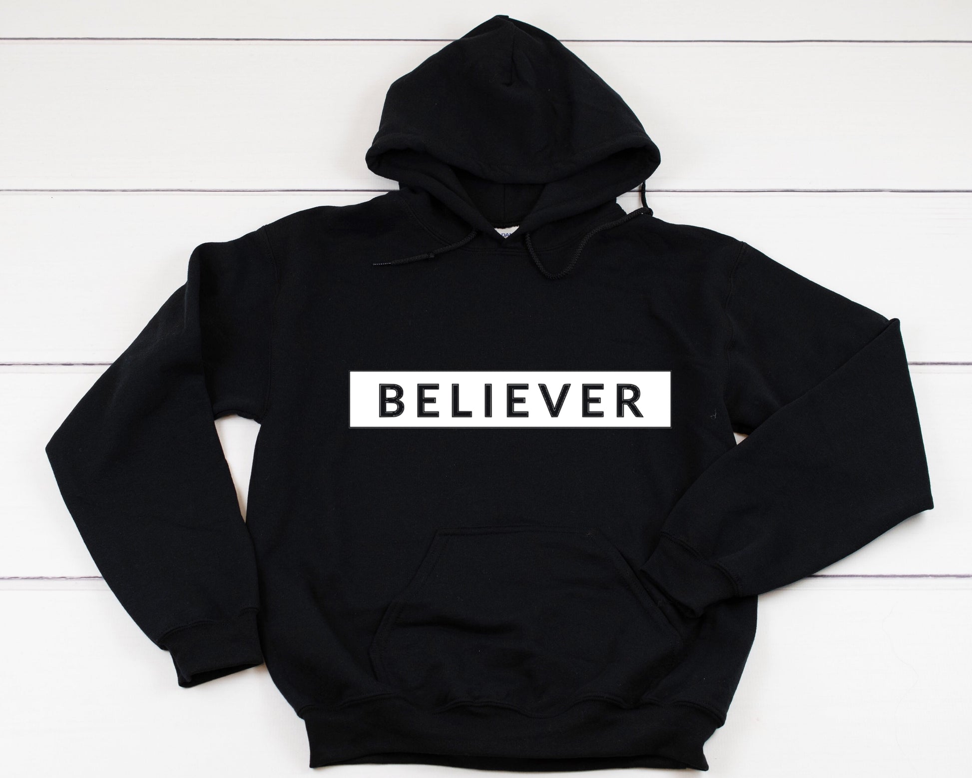 Make a faith and fashion statement in our “Believer” Hoodie.