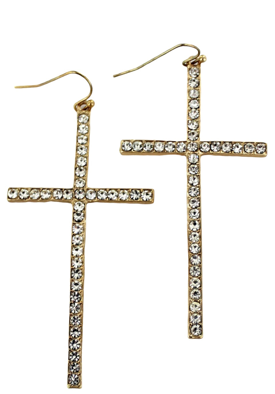 These sparkling cross earrings will look amazing with any outfit. Available in goldtone and silvertone.