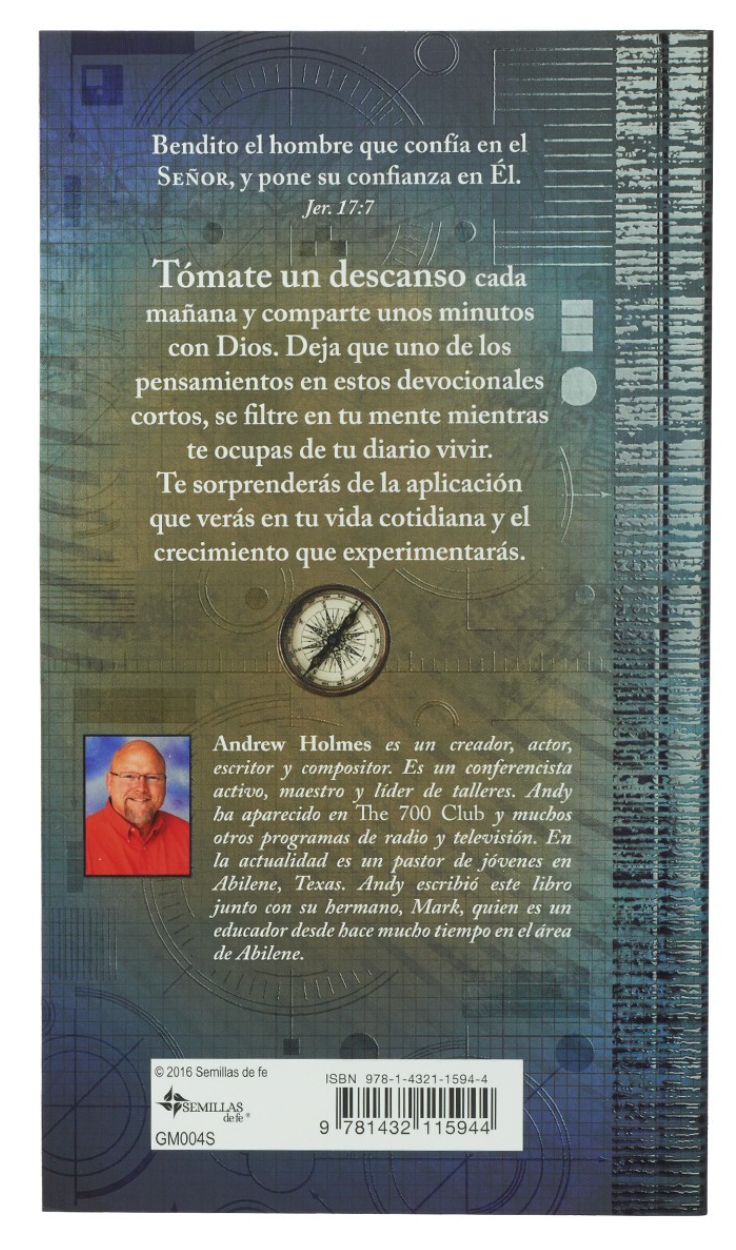 Cada una de las 90 lecturas empieza con un título, seguido por una escritura de referencia y un devocional corto. El día termina con una frase corta. Permite que los devocionales cortos de Momentos con Dios para hombres se filtren en tu mente mientras sigues con tu día. Luego, observa cómo tu vida se va transformando más como la de Cristo.