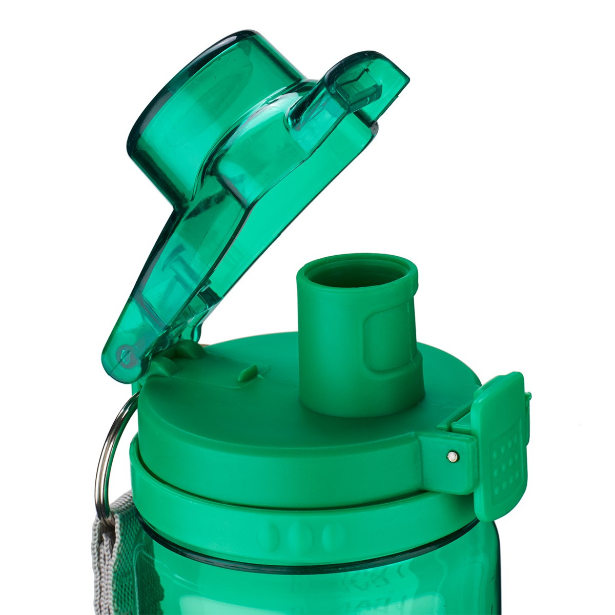 - Green water bottle with gray text