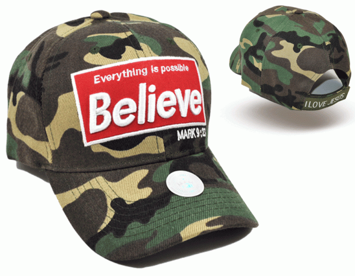 Fashionable collection of baseball caps and hats with an inspirational message.